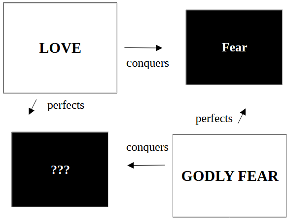 I made a virtue chart but I’m not sure its accurate. I think godly fear may not be a refinement of regular fear at all. In other words, I don’t know that regular fear is a distortion of godly fear. It may be something more like awe.